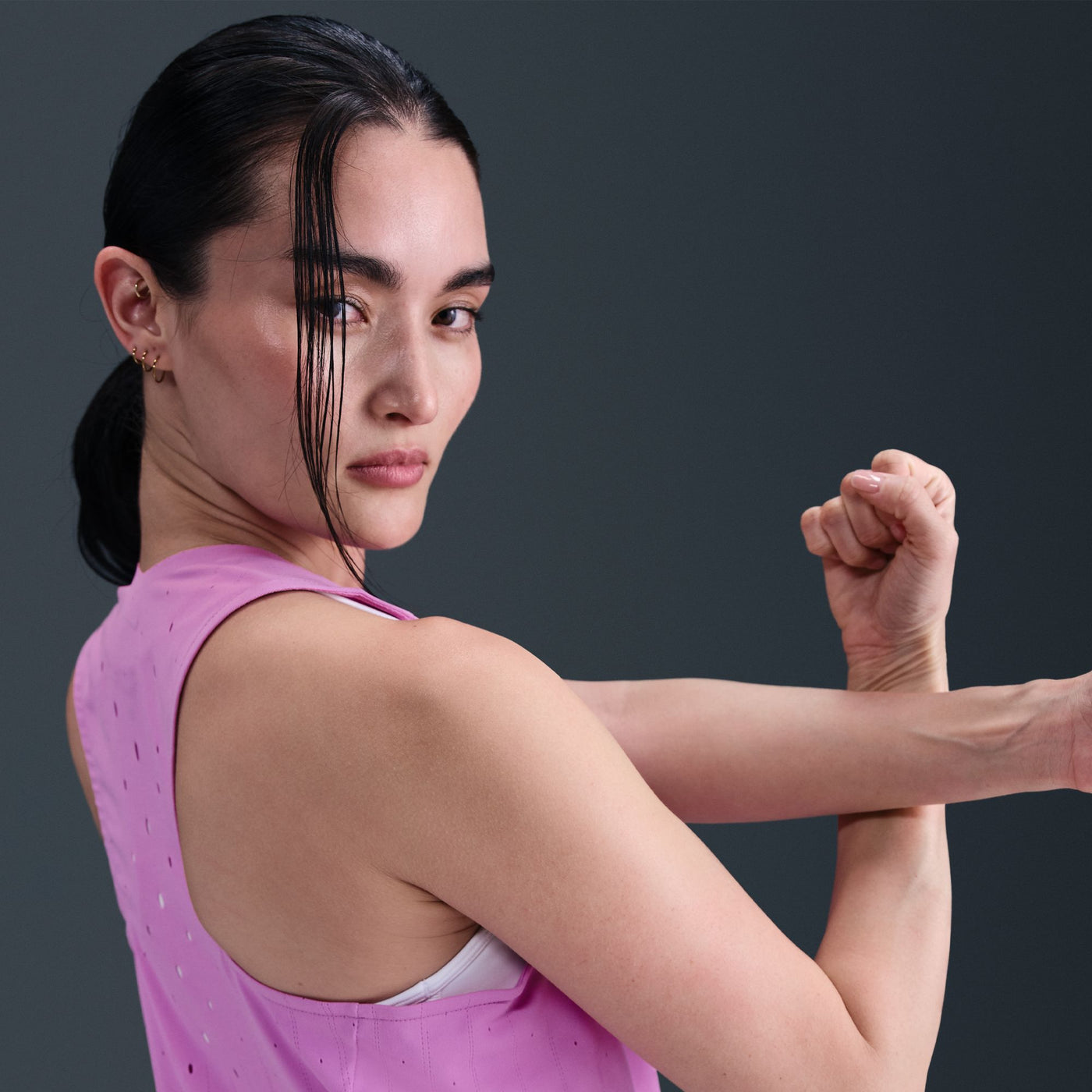 Perform your best with a singlet designed to help you crush your goals. Advanced engineering and moisture-wicking fabric help keep you dry and comfortable as you push the limits. We updated the ventilation features by increasing the number of holes in high-heat zones to invite more airflow, helping you stay cool and focused on your next stride.