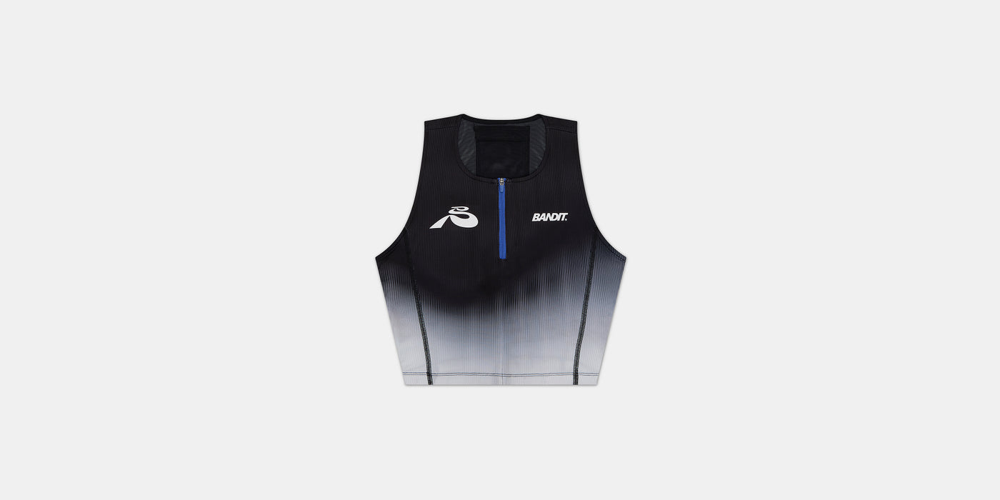 Our signature race crop now with updated pocketing: 4 gel, 1 phone at center-back. Constructed with a built-in bra with mesh-piecing and a quarter-zipper for breathability. Ultralight, airy, and anti-chafing. Trusted in the Paris 2024 Olympics.